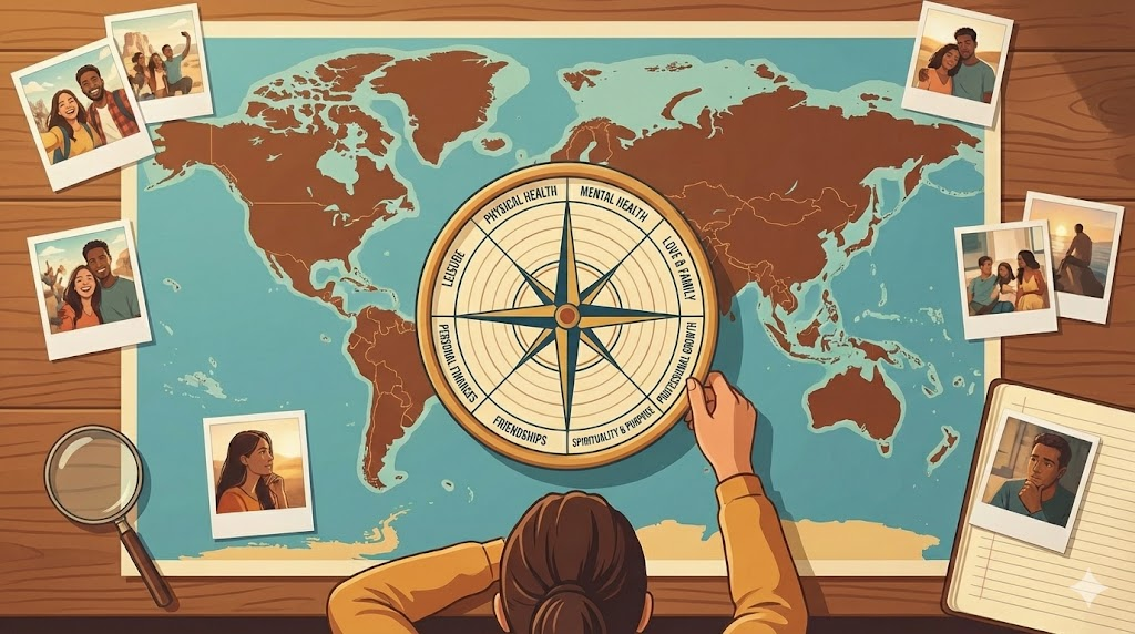 That’s why I love "The Wheel of Life." It guides us to objectively score how we did in eight core dimensions: Physical Health, Mental Health, Love & Family, Professional Growth, Spirituality & Purpose, Friendships, Personal Finances, and Leisure.